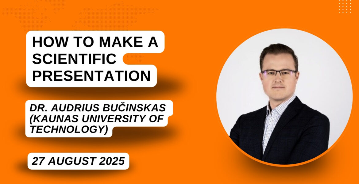 This session focused on effective scientific presentations. The lecture was conducted by Dr. Audrius Bučinskas, Associate Professor at Kaunas University of Technology, and covered both theoretical principles and practical guidance for researchers.